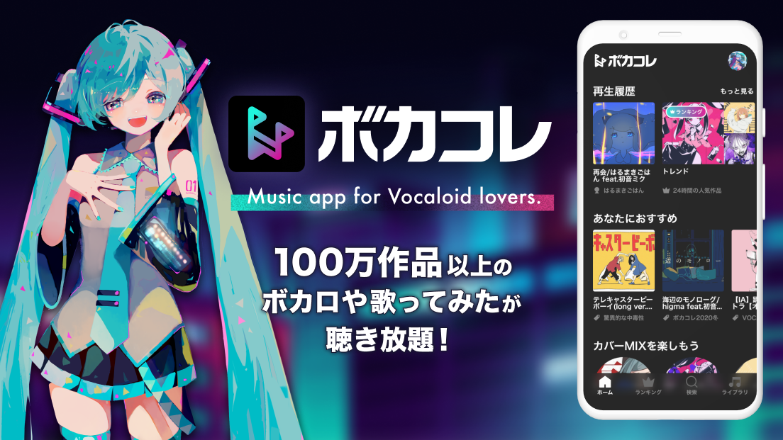 ボカコレアプリは、VOCALOIDファンにとって理想的な音楽アプリで、100万曲以上のボカロ曲や「歌ってみた」を簡単に楽しむことができます。